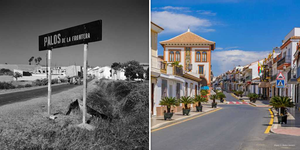 Muchos tenemos grabadas en nuestras retinas fotografías más o menos históricas de nuestra localidad. Algunos recordarán la célebre foto del sacerdote de Palos en la puerta de la casa de los Pinzón con algunas niñas, señoras y otras personas paseando por la calle o en las puertas de sus casas; otros recordarán tantas postales de la Fontanilla, con las pitas, sin las pitas, con un camino de tierra detrás de ella, o semienterrada con el padre Sebastián señalándola. O aquellas de nuestra parroquia de San Jorge, tanto por fuera, como de su interior. Tantísimas de nuestra madre y patrona, la Virgen de los Milagros, cuando se vestía con finas telas, sin las vestiduras pero con la policromía, después de la restauración realizada al finalizar la Guerra Civil, paseando por la ría en barca o en sus procesiones y romería. Muchas otras conocidísimas del Convento de la Rábida y su entorno, los jardines, la Columna de los Descubridores o con la famosa palmera en la bajada de dicha columna, que tradicionalmente llamaron como “la palmera de Colón”.