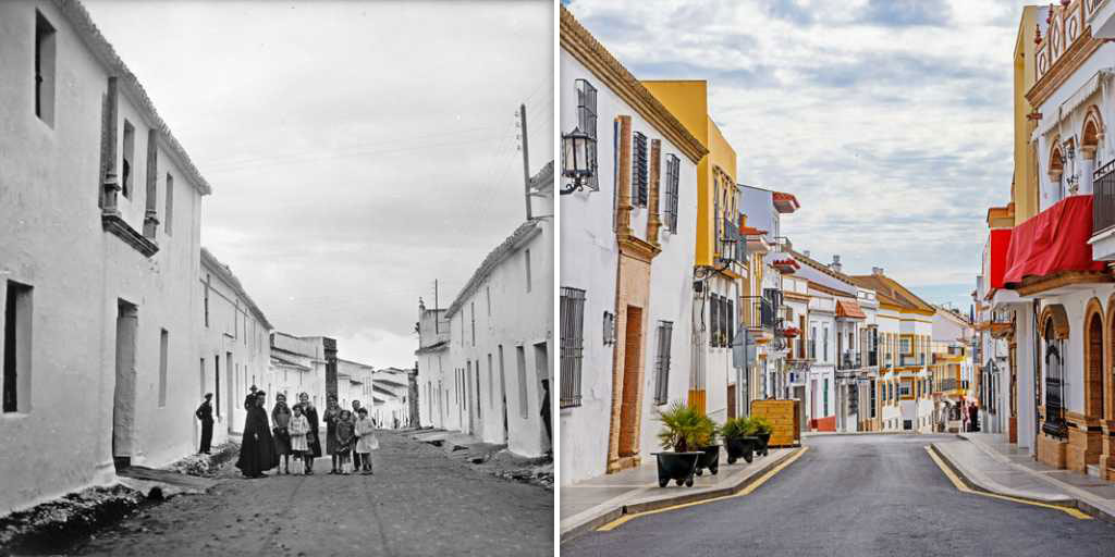 Con esta ingente cantidad de material y en compañía de nuestro archivero e historiador local, D. Eduardo García, realizamos la selección de las imágenes que componen esta exposición y de aquellas que debía repetir desde el mismo ángulo –o aproximado– en la actualidad para poder, como dije antes, comparar en ambas la transformación que ha experimentado nuestra localidad. Esta última labor ha resultado en alguna que otra toma, de muy difícil realización, ya que la toma desde el mismo ángulo de alguna de las fotografías en la actualidad resultaba prácticamente imposible por los profundos cambios que habían experimentado algunas de las localizaciones, por ello hubo que variar ligeramente el ángulo en alguna de ellas.